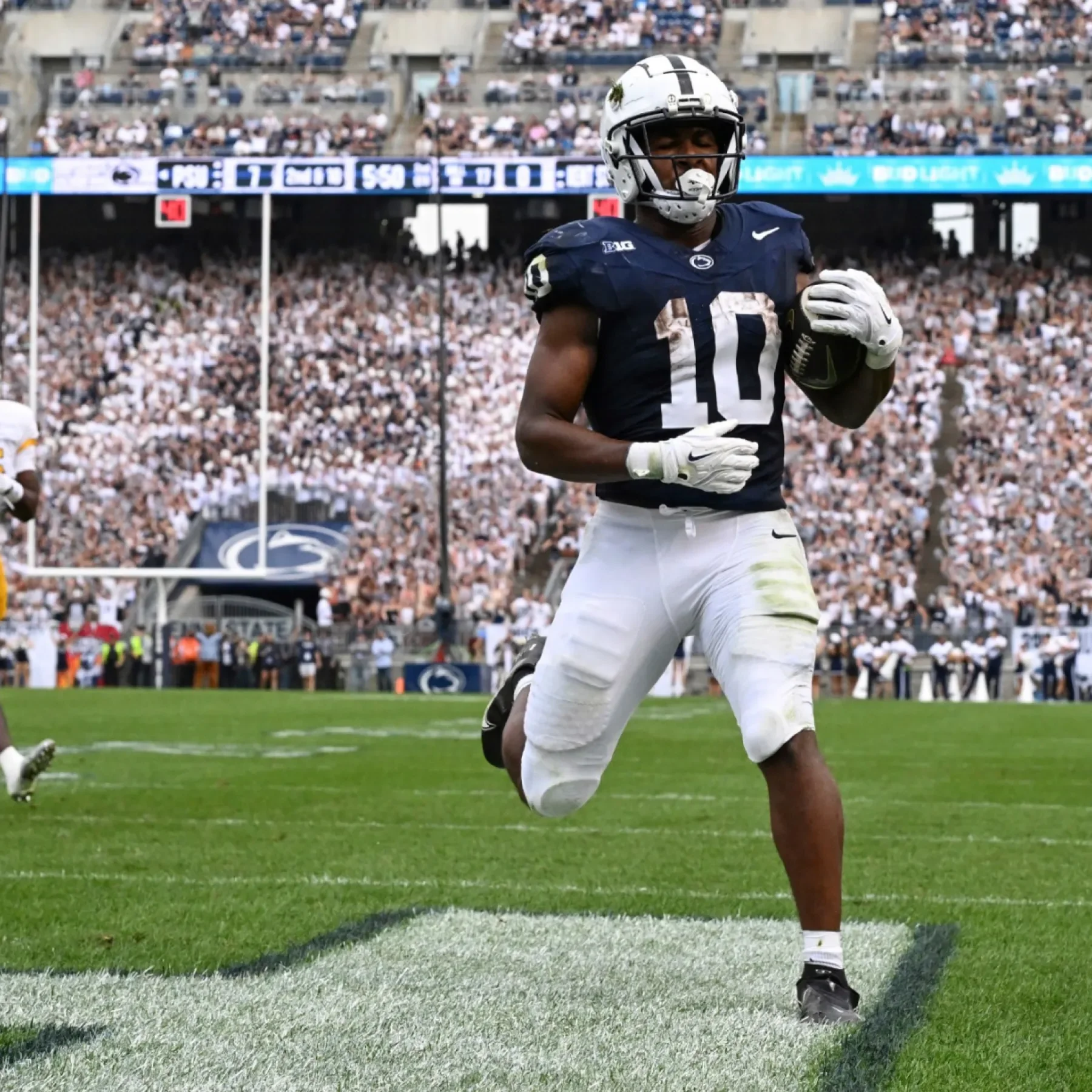 Former 5-star recruit out of Reading, PA, who committed to the Nittany Lions over the big SEC schools and Notre Dame. Singleton also competed in track and field in high school. Singleton was a star right away in Happy Valley, when he rushed for 1,061 yards and 12 touchdowns and averaged 6.8 yards per carry during his true freshman season, still his most productive rushing season statistically. He handled kickoff returns as well, logging 14 returns for 349 yards (24.9) with a 100-yard touchdown. He followed that up with 171 rushes for 752 yards and eight touchdowns in 2023. Showed his receiving upside by having 26 catches for 308 yards and two touchdowns.